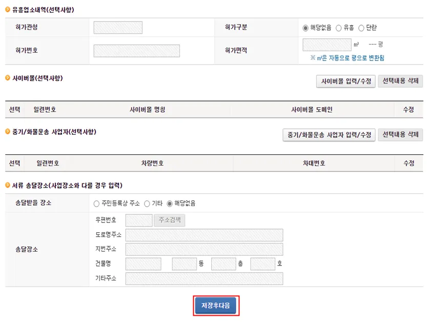 해당되는 항목을 입력하신 후 저장후다음을 클릭해주세요.