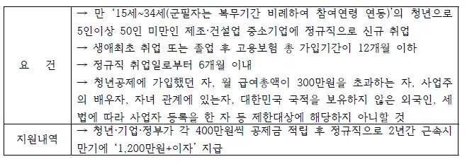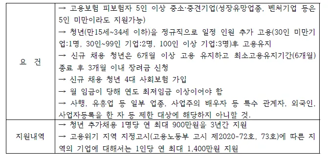 청년을 정규직으로 추가로 고용한 중소·중견기업에 인건비를 지원함으로써 양질의 청년일자리 창출을 지원하는 제도