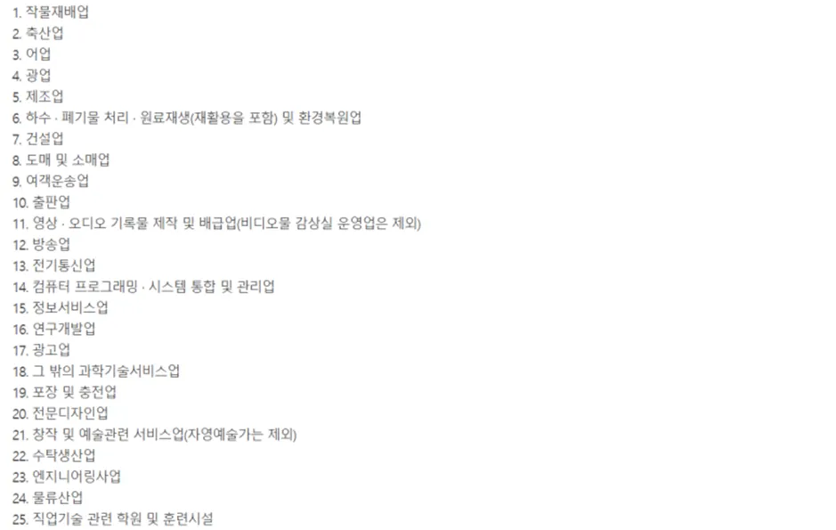 특별세액감면을 받을 수 있는 대상 법인은 아래와 같습니다.
