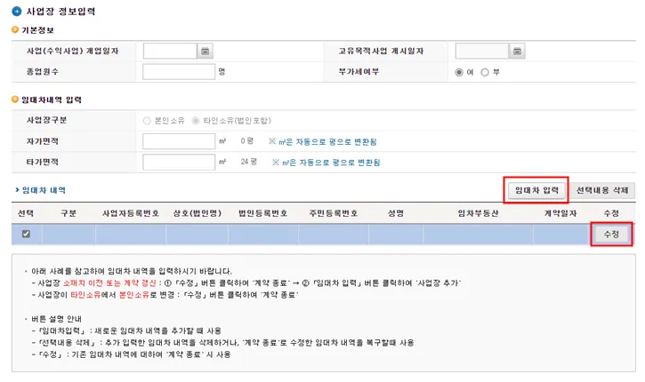 5. 기존 임대차내역은 계약 종료로 수정 후, 새로운 임대차내역 입력